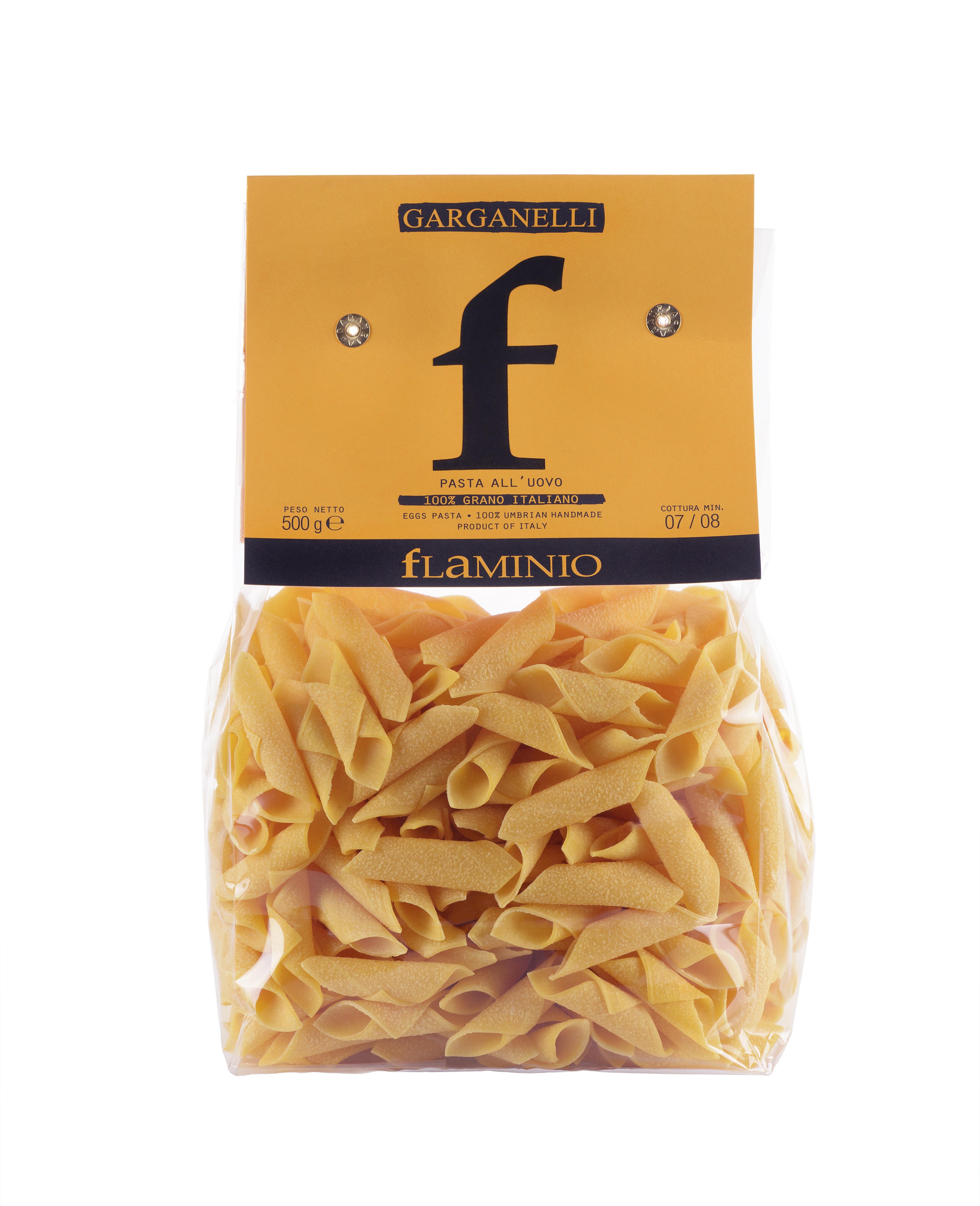 Těstoviny Garganelli 500 g jsou vyrobeny ze 100% italské semoly (krupice z tvrdozrnné pšenice) té nejvyšší kvality a z čerstvých pasterizovaných vajec od výhradně italských slepic krmených pouze rostlinným krmivem. Zaručují výborné charakteristiky i po uvaření (udrží si perfektní tvar a konzistenci). Fakt, že tyto těstoviny jsou lisovány na bronzovém profilu, umožňuje zachycení většího množství omáčky na porózním povrchu těstovin, poskytuje tak lepší chuť. Jen ty nejlepší těstoviny jsou vyráběny na bronzovém profilu. Tyto těstoviny jsou také sušeny více než 24 h, což je další garance kvality. Pomalé sušení při nízké teplotě (55 °C) zajistí, že se těstoviny uvaří jednotně a při varu se netrhají.