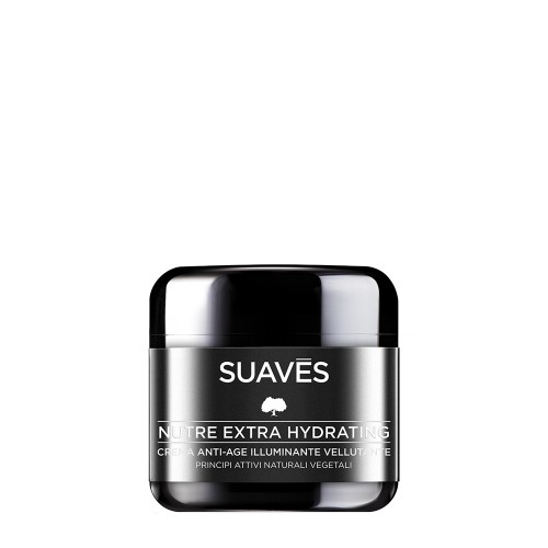 Rozjasňující a zjemňující krém proti stárnutí Suaves Nutre Extra Hydrating pečuje o pleť obličeje počínaje od prvních let, kdy naše pleť začíná stárnout, tedy od 25 let věku. Jedná se o velmi silnou směs antioxidantů bojujících proti volným radikálům, které stojí za degenerativním procesem, tak, že neutralizuje jejich dopad. Účinné rostlinné složky tohoto produktu stimulují procesy obnovy pleti, tonuzují ji a zvyšují její pružnost. Působení vitamínů A a E má za následek snížení příznaků stárnutí. Pleť je po aplikaci krému sametově hebká a jemná a znatelně rozjasněná. Díky obsahu ženšenu a extra panenského olivového oleje je pleť chráněna před vnějšími vlivy, jelikož jsou obnoveny bariéry pleti. Tento krém s prvotřídní a sametovou konzistencí vytváří na pleti příjemný pocit, pleť jakoby lehce zahaluje a nezanechává žádný mastný či těžký film. Navíc díky účinku slunečních filtrů UVA a UVB pleť účinně chrání a dodává jí nejlepší úroveň hydratace.