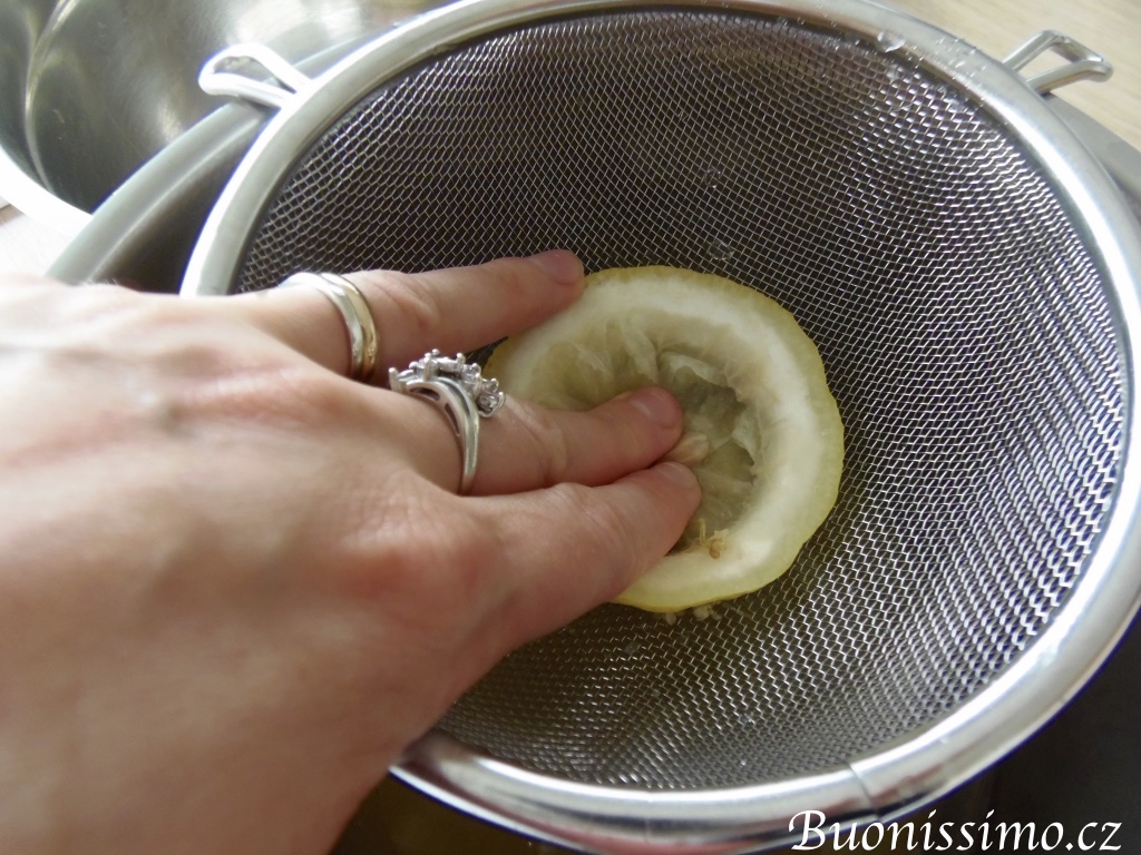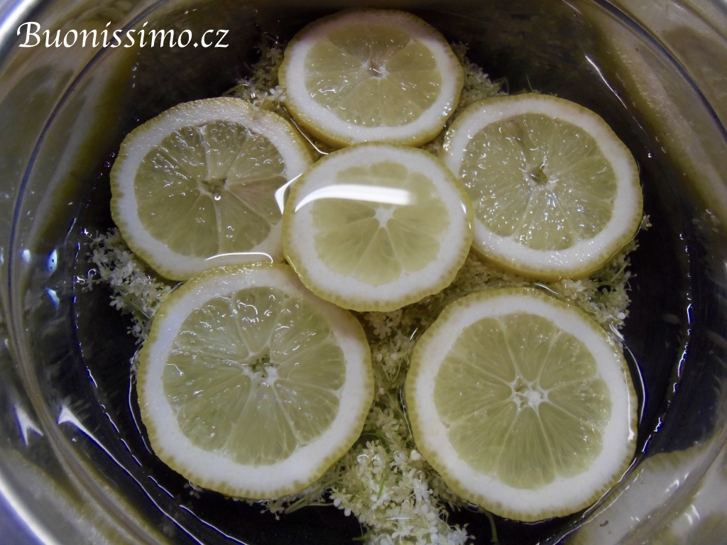 První fáze trvá 34 hodin. Květy otrháme ze stonků a dáme je do mísy. Přidáme na plátky nakrájený bio citrón a zalijeme 1l vody. Zatížíme plátky citrónů například menší porcelánovou miskou (nebo něčím jiným čistým a těžším), aby květy i citrón zůstaly pod hladinou vody. Přiklopíme a necháme 34 hodin máčet. |