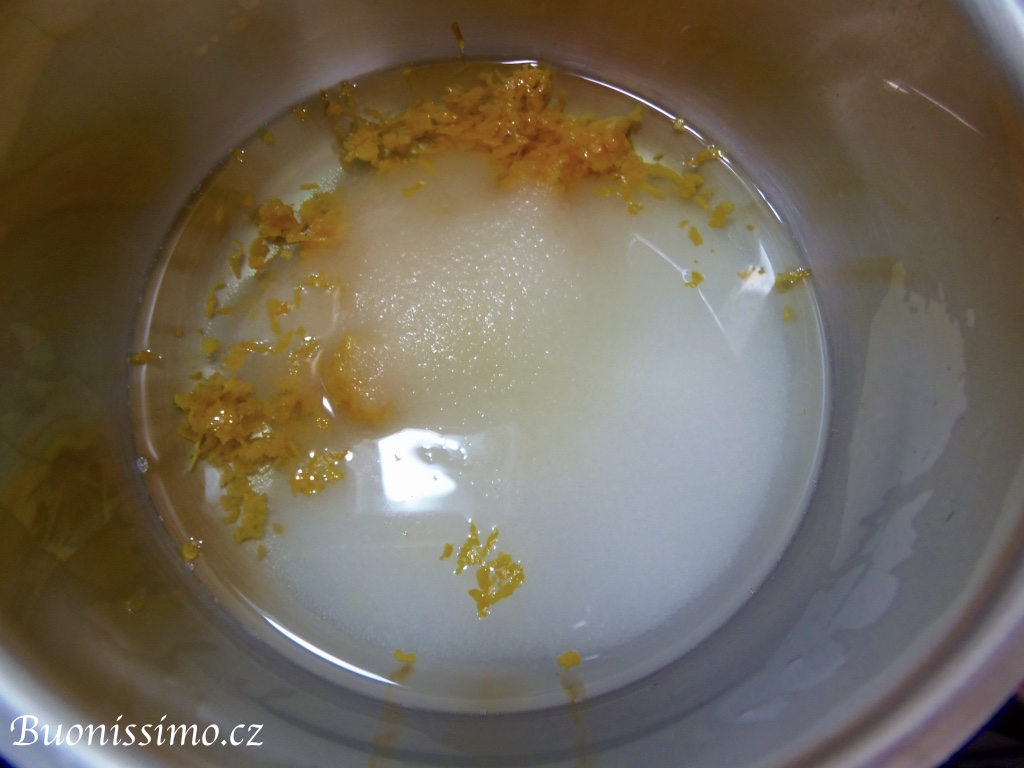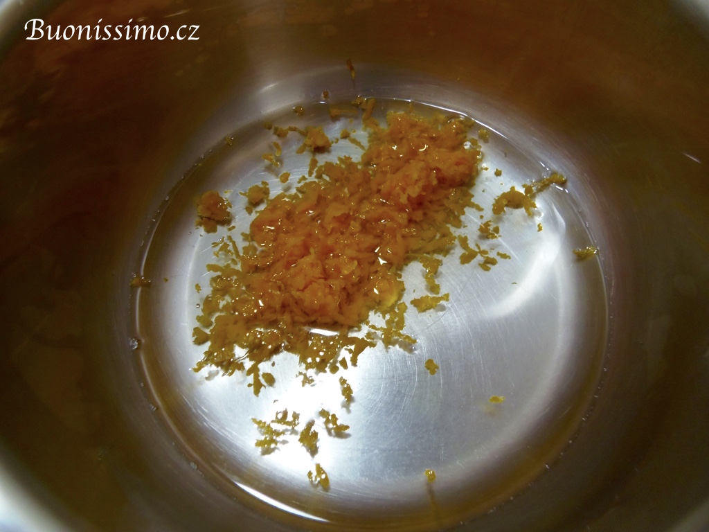 Kromě těchto dvou bází si připravíme ještě sirup z bio pomerančové kůry, kterým budeme muffiny, budoucí cupcaky, máčet. Pokud chcete, můžete do rozvaru přidat i likér, nicméně já dám tento cupcake ochutnat své dceři, proto s ním nyní nepočítám.