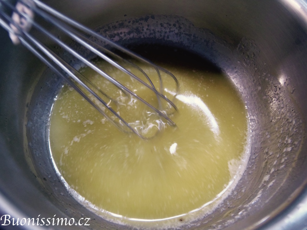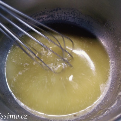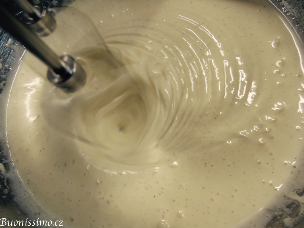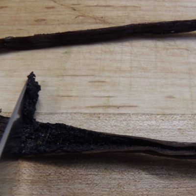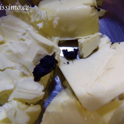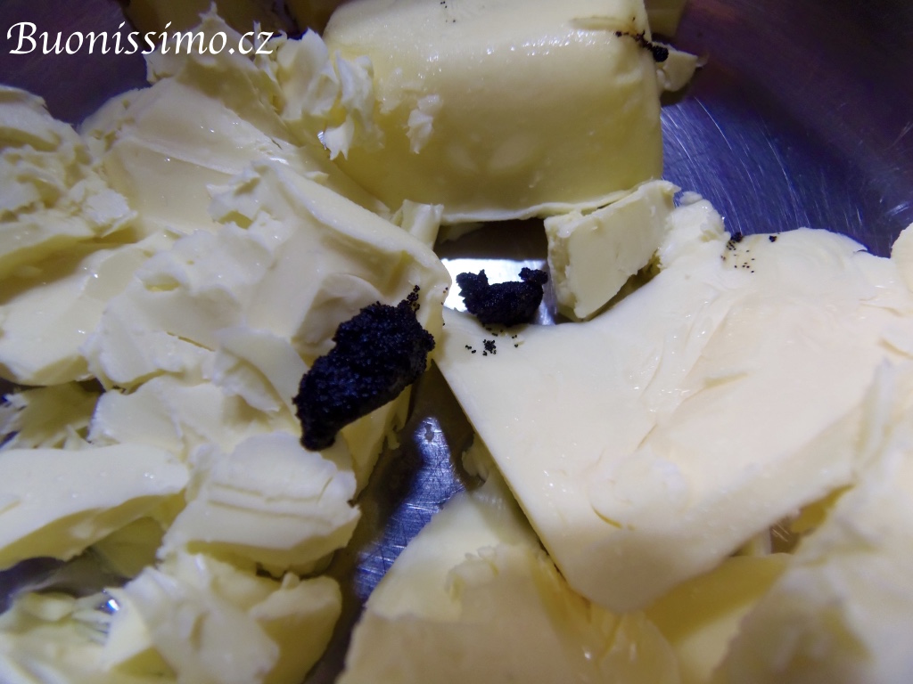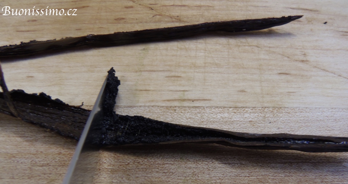 Vanilkový lusk podélně rozkrojíme ostrým nožem, jehož špičkou následně seškrábneme dužinu z obou polovin vanilkového lusku. Vanilku přidáme do kastrůlku s olivovým máslem Burroliva a začneme míchat tak, aby se zrnka vanilky oddělily. Vyprázdněné části vanilkového lusku uzavřeme zpět do skleněné nádobky, budeme je moci použít pro příští přípravu moučníku (Například povařením v mléce, které při příštím receptu použijeme. Získáme tak i tu vanilku, kterou jsme nožem nevybrali.) |