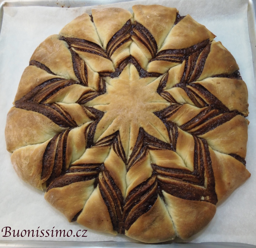 Vypadá krásně! Jakoby na Vašem stole byla váza s květinami. Je úplná škoda odtrhnout první kousek této briošky, že? Ale kdo to udělá, ucítí tu příjemnou souhru chutného pečiva a lahodné náplně. Pak je potřeba zapnout troubu znovu nebo na stůl postavit tu vázu… 🙂
